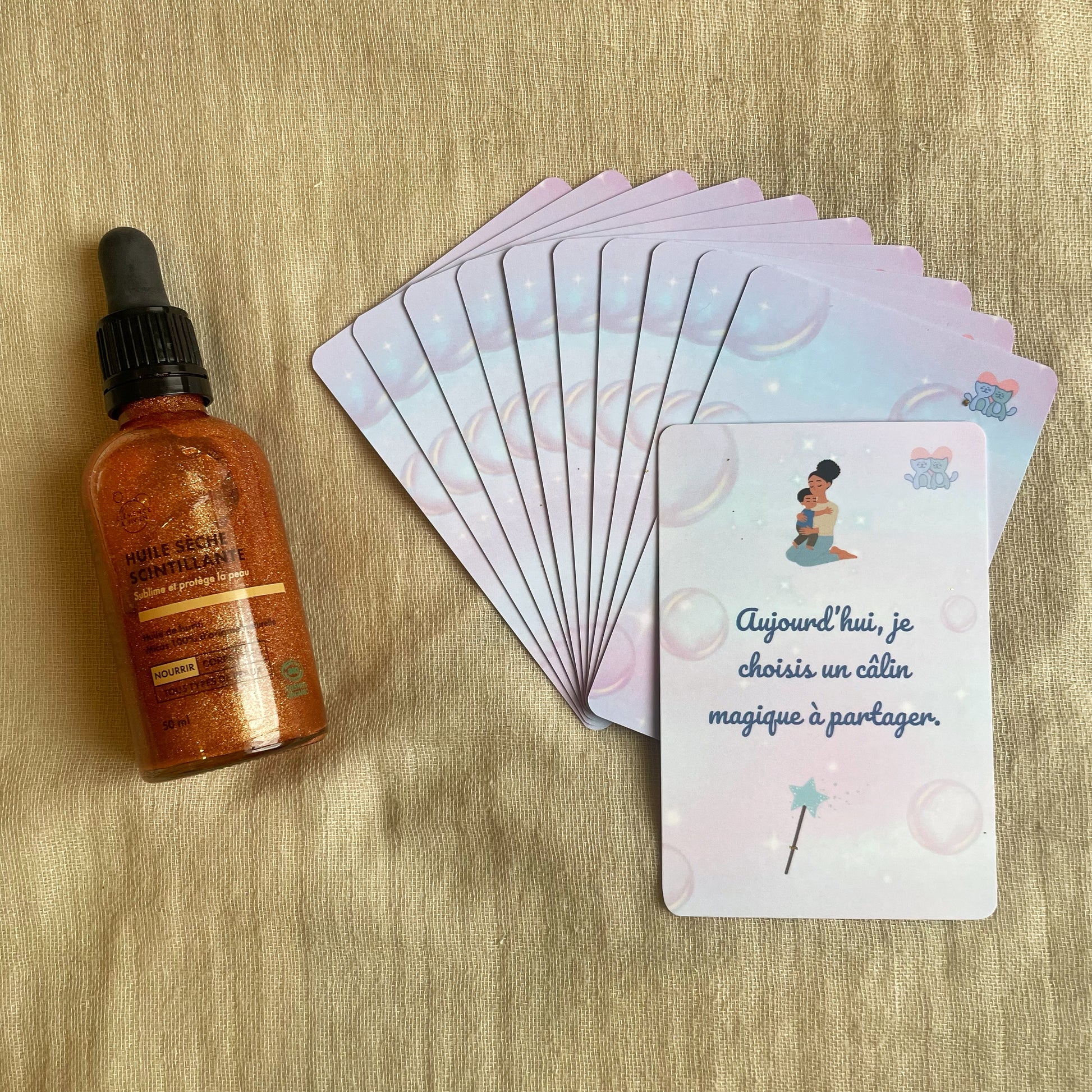 Elle nourrit et illumine délicatement la peau, tout en apportant une touche dorée et festive : un vrai rituel cocooning à partager avec ton enfant… ou à t'offrir rien qu'à toi ⭐
